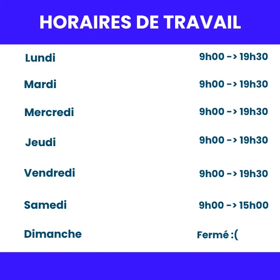 Lundi – Vendredi 9h-19h30